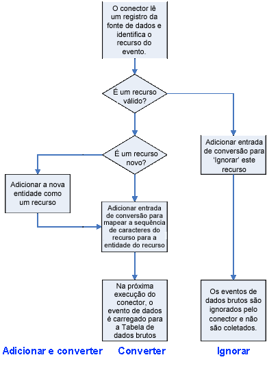 Na etapa anterior, havia uma série de eventos rejeitados criados durante a execução do conector. Esses eventos rejeitados eram armazenados no arquivo RejectedEvents.txt, mas também eram armazenados como entradas de conversão pendentes no banco de dados do CA Business Service Insight. A próxima etapa no processo de carregamento de dados brutos no sistema é fornecer uma conversão do que foi avaliado, de modo que o CA Business Service Insight possa usar esses dados, conforme necessário.