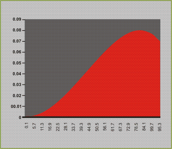 A consulta detalhada a seguir pode ser usada em um relatório em formato livre para apresentar a distribuição normal de valores em uma tabela, conforme mostrado no gráfico a seguir: