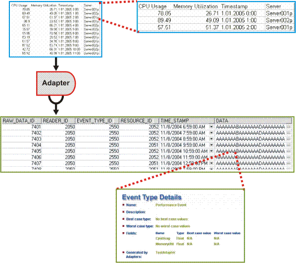 Raw data is retrieved by the Adapters from various, disparate data sources and held in a variety of formats. This diverse data needs to be retrieved and homogenized into a single database table. Therefore, the Adapters are required to read and normalize the data into a unified data model, as shown in the following figure.