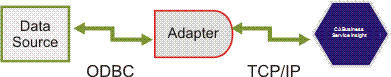 The Adapter communicates with the data source to retrieve the data using an ODBC connection and may be located either locally or remotely from the data source, as long as the Adapter can establish the ODBC connection.