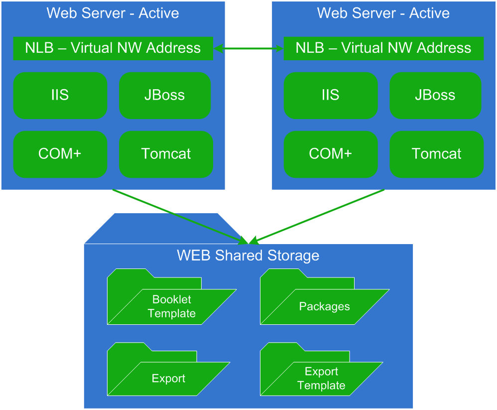 The web server is deployed as Active/Active. This means that all web servers are active simultaneously and serve clients as needed.