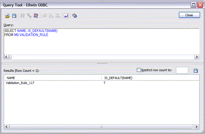 For example, when you create a new Validation_Rule object in CA ERwin DM, it is assigned an application-generated name of the form Validation_Rule_XX where XX is the ID. A query would show that this is a default name.