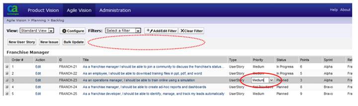 - When making in-line updates on the Agile Vision Backlog, the change will take place automatically, there is no need to “Save”.