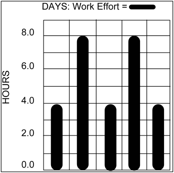The Contour loading pattern fits resource loading around the resource's remaining availability, smoothing out the peaks and valleys. It is a very flexible loading pattern; it can appear as the reverse or mirror image of overlapping task patterns.