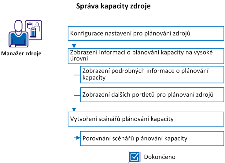 Následující schéma popisuje, jak manažer zdrojů spravuje plánování kapacity.