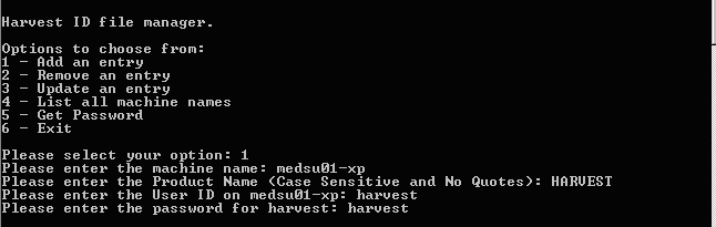 If you select Option 1, hidmgr prompts you to supply the information shown on the following sample screen: