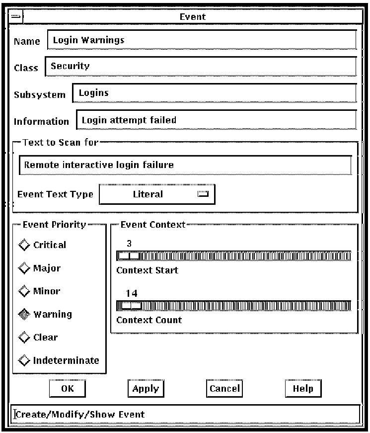 Add the event to the database as shown in the section, Adding Events, earlier in this chapter. The following figure shows you the completed dialog box.