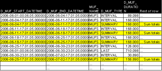 In this example, rather than summarizing that one week where there are two rowsets, it would be simpler for later reporting and selection purposes for the user to build one Summary rowset for each week, even though it would be the same as the INTERVAL rowset for three of the four weeks.