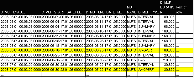 After you have collected and displayed data for performance monitoring from varying duration lengths, it may be useful to have average performance AVGPERF rowsets.