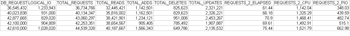 To make the baseline and summary rowsets appear next to each other, we suppress the header row on the second execution (HEADER NO).