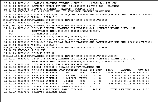 - 17.01.15—The graceful shutdown starts. Each job step completes as it normally would, including the PRINT step. The PRINT step produced all the normal reports for the data sets that were backed up.