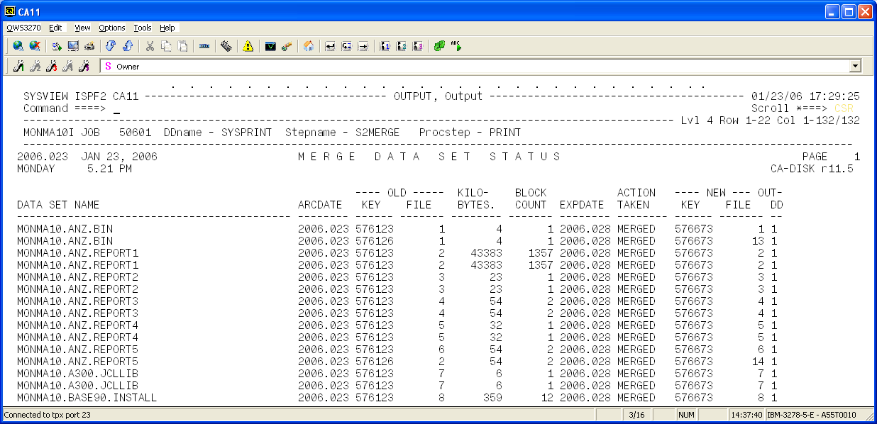 The following is a sample MERGE Report: