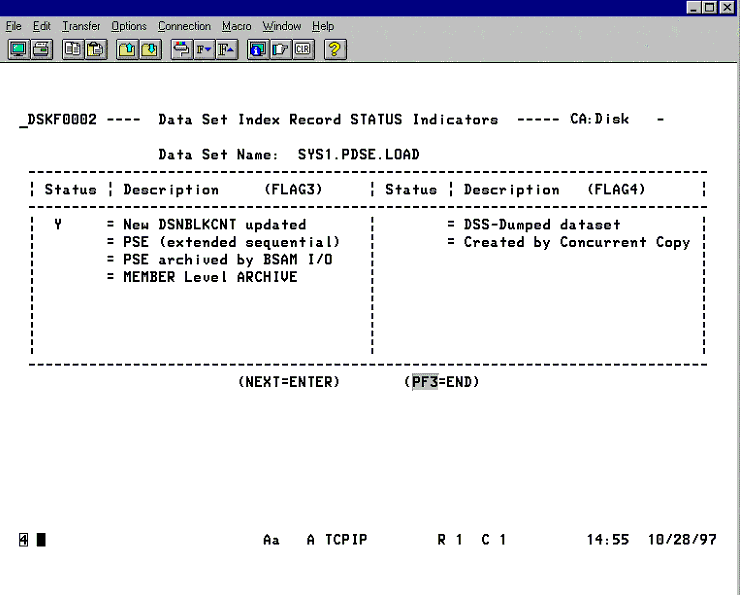 ISPF › ISPF Panel Examples › DSNINDEX Flag Field Status Indicators — Panel 2