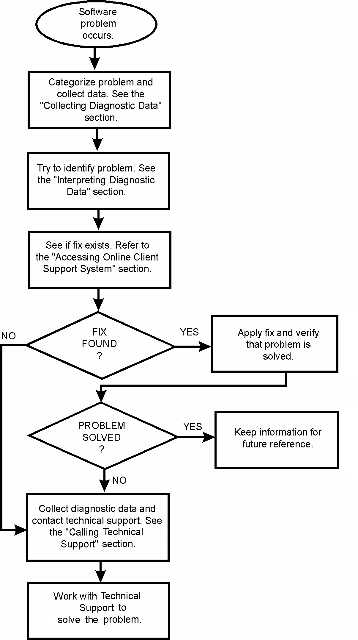 Refer to the following flowchart for a summary of the procedures you must follow if you have a problem with a CA software product. Each of these procedures is detailed on the following pages.