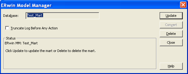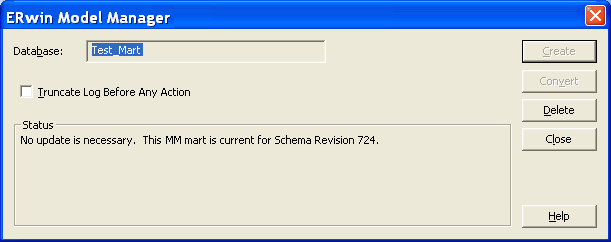 The model is not fully converted or updated until you initialize the mart and open and save the model in the mart with CA ERwin Data Modeler for the first time. It can take a few minutes longer to open the model the first time to complete the process.