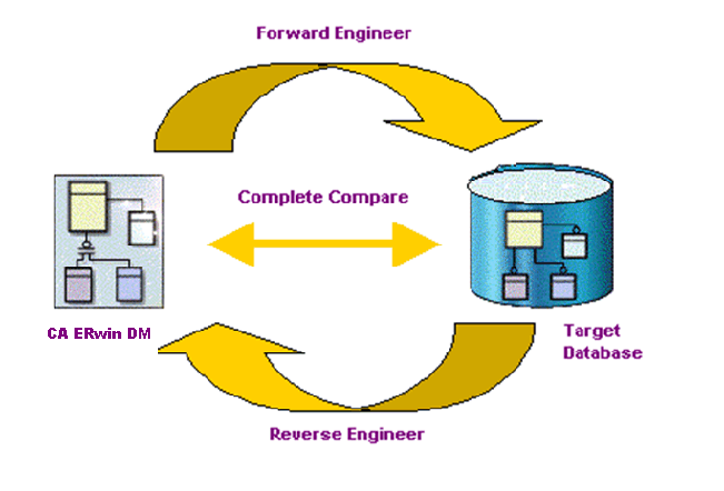 The Complete Compare technology automates model and database synchronization by letting you compare the model with the database, displaying, and analyzing the differences. This enables you to selectively move the differences into the model or generate them into the database.