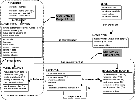 - The store's CUSTOMERs rent the MOVIE-COPYs. A MOVIE-RENTAL-RECORD records the particulars of the rental of a MOVIE-COPY by a CUSTOMER. The same MOVIE-COPY may, over time, be rented to many CUSTOMERs.