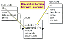 Sometimes, unification is not the acceptable behavior. You may want to maintain a distinction between multiple attributes with the same name in an entity because each serves a different purpose. In this situation, you can assign a rolename, which is similar to an alias that you assign to a foreign key.
