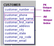 Often the customer account number is not available. But, a customer record is found quickly if the video store database has another unique index that points to the Customer Last Name and Customer Phone columns.