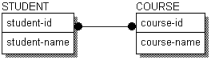 This figure shows a many-to-many relationship between STUDENTs and COURSEs. If you did not eliminate the many-to-many relationship between COURSE and STUDENT, the key of COURSE would be included in the key of STUDENT, and the key of STUDENT would be included in the key of COURSE. Since COURSEs are identified by their own keys, and likewise for STUDENTs this, creates an endless loop.