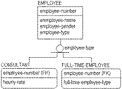 A complete subtype indicates that the modeler is certain that all possible subtype entities are included in the subtype structure. For example, a complete subtype could capture information specific to male and female employees, as shown in the figure below. A complete subtype is indicated by two lines at the bottom of the subtype symbol.