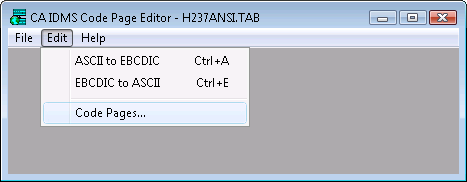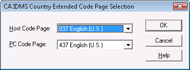 For a new or existing translation table, select Edit, Code Pages to access the CA IDMS Country Extended Code Page Selection dialog. This dialog lets you select the code pages to use for your translation table.