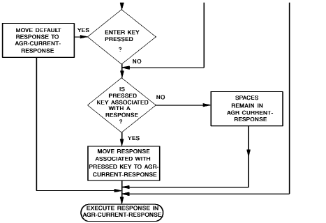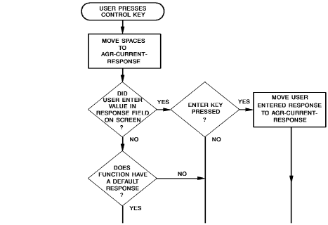 - The value in AGR-CURRENT-RESPONSE depends upon whether the AGR-DEFAULT-RESPONSE field contains a value; whether the user enters a new value in the response field; or whether there is a response value associated with the control key (other than ENTER) pressed by the user.