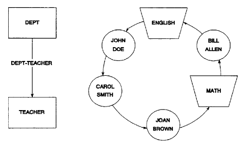 In Figure 2.12, the set occurrence owned by the ENGLISH record is a complete set chain. As the set is walked from the ENGLISH record, however, another owner record (MATH) is encountered.