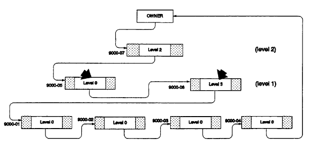 In the example in Figure 2.21 the upper level pointer in record 9000-07 points to a record in another set.