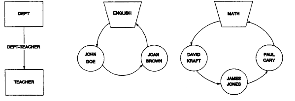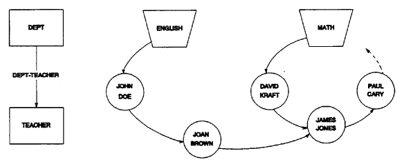 If the record does not have a valid owner pointer, the record is placed in the set where it is nearest the owner record. In Figure 2.42, James Jones and Paul Cary are closest to the MATH record (that is, they are the 2nd and 3rd records in the MATH set as opposed to 3rd and 4th records in the ENGLISH set). Figure 2.43 shows how the sets will be fixed by CA IDMS/DB Audit, by placing James Jones and Paul Cary in the MATH set.