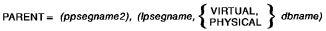 The PARENT parameter on the logical child's SEGM statement takes the following form: