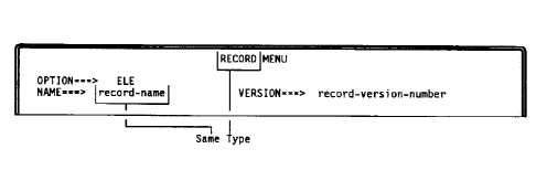 Press Enter. The RECORD/ELEMENTS cross-reference screen displays.