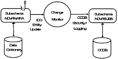 The Change Monitor runs as a task named NDVRSERV under CV, or as a subtask of the operating system in local mode operation. The task definition and programs for the Change Monitor are provided on the CA Endevor/DB installation media. Once the installation procedure (shipped with the media) is executed, the Change Monitor is available to any dictionary for which the IDMSNWKA -to- NDVRNWKA subschema mapping has been specified (for the applicable database name in the table). It is only necessary to install the Change Monitor once per CV. Any number of dictionary/CCDB pairs can be run through the monitor.