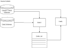The promotion process begins by executing the SELECTION/VERIFICATION PROCESSOR (program NDVRDSEL). Entities are selected to be migrated from the information contained in the CCDB Change Log, input selection criteria, and the IDD. As a result, only those entities, which have been actually modified in the source system since the last migration to the target system, are initially eligible. Criteria, which are used to select entities for promotion, include the target system identifier, CCIDs, users, status, date and time ranges, management group, or a combination thereof.