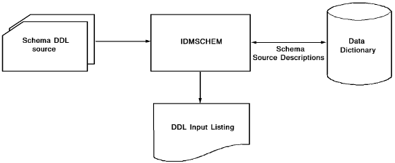The input to IDMSCHEM is the source schema DDL output by the generator.