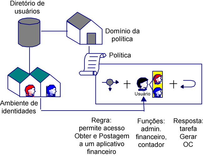 A figura a seguir ilustra a relação de objetos de política em uma política com base em função.