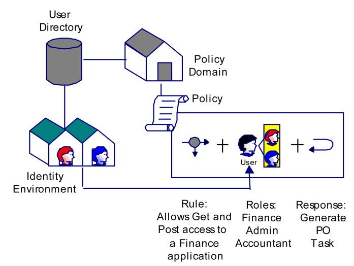 You can bind SiteMinder policies to users, or to roles, or to users and roles. Assume that a user or role member attempts to access a protected resource. SiteMinder uses information in the policy to determine whether to grant access, and to trigger responses.