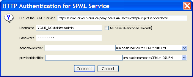 2. Using the SPML Manager, connect to an SPML service.
