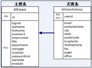 例如,如果用户相关基本数据存储在 tblUsers 中,地址信息存储在 tblUserAddress 中,用户管理对象的表定义将与以下条目类似: