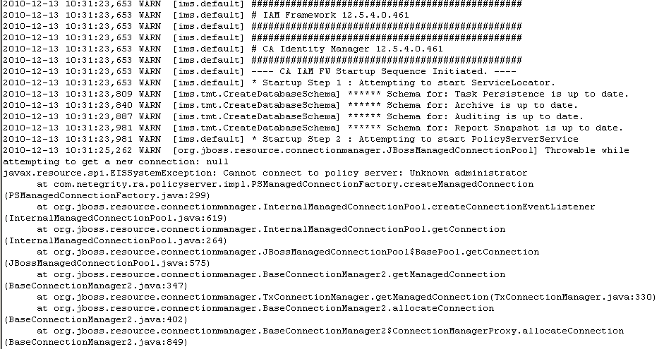 Nota: Es posible que no se muestre este error si JBoss se ejecuta como servicio. En la medida de lo posible, pruebe la configuración sin ejecutar JBoss como servicio.