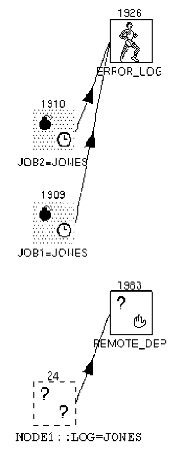 When you select jobs to display in the Load Jobs dialog box, the manager also displays any jobs that are connected to the selected jobs by dependencies. These dependency-related jobs can be on the current node or a remote node. The manager displays the job boxes for selected and unselected jobs differently, as described in the following table. The owner of an unselected job is always displayed.