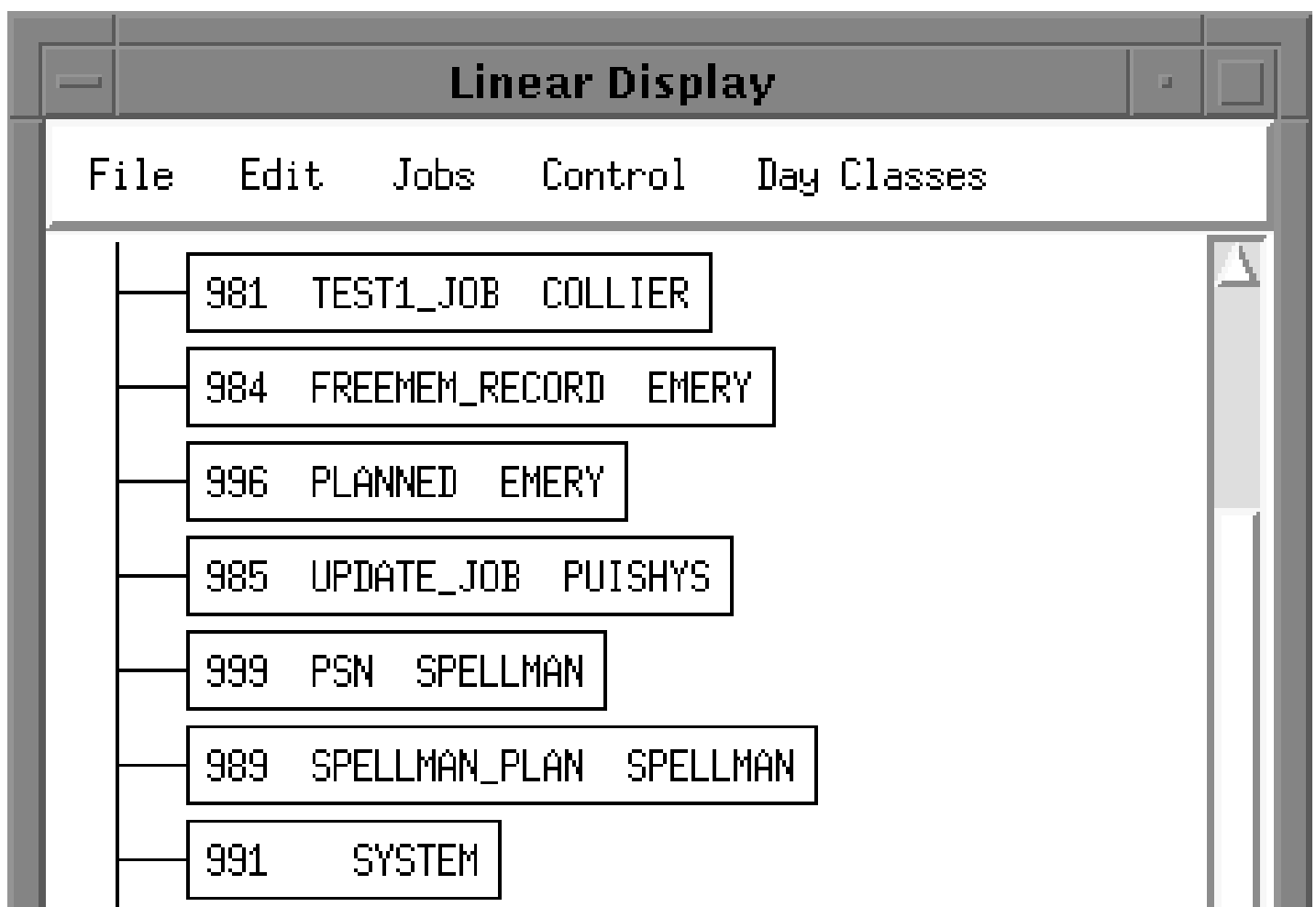 Using the Motif Interface › Sorting Jobs in the Linear Display Window › Examples of Jobs Sorted by Job Owner