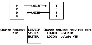 The LIB/CCF system also provides a control mechanism called a Change Request. Each change request for a problem or modification is assigned a change request ID when initiated. All LIB/CCF functions that must be performed to complete this change, such as login and logout, are associated with this change request. Therefore, a LIB/CCF system master file is also required for storing these change requests. Whenever a member is logged out, a Module Tracking Record is created for it.