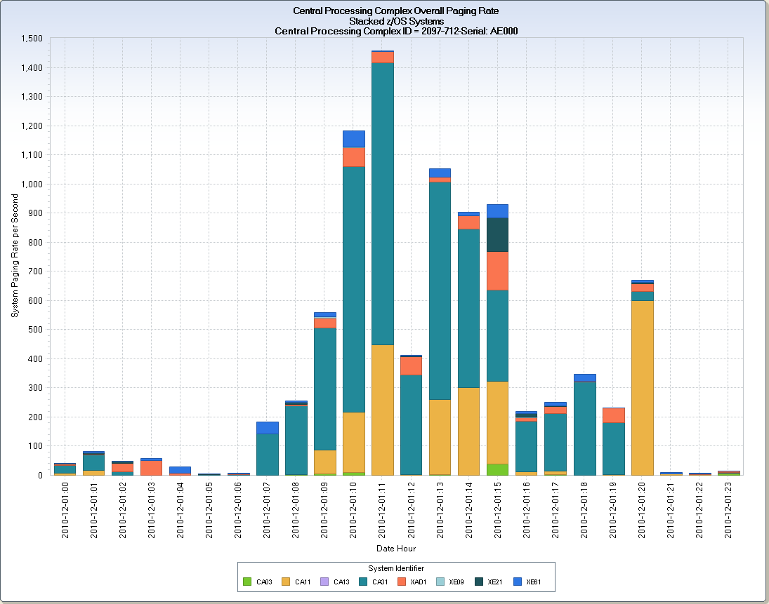 CA MICS Hardware and SCP Analyzer (RMF) Queries › Mainframe CPC Memory Use and Paging › RMFPAG – z/OS System Daily Paging Analysis