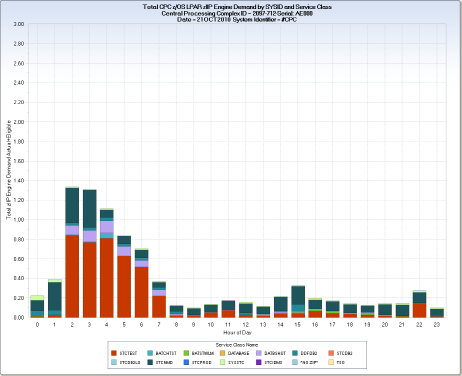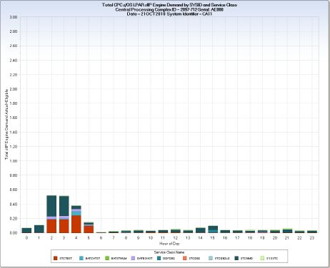 CA MICS Hardware and SCP Analyzer (RMF) Queries › Mainframe CPC Specialty Engine Focus › RMFZIS – Daily zIIP Engine Use and Demand by Service Class
