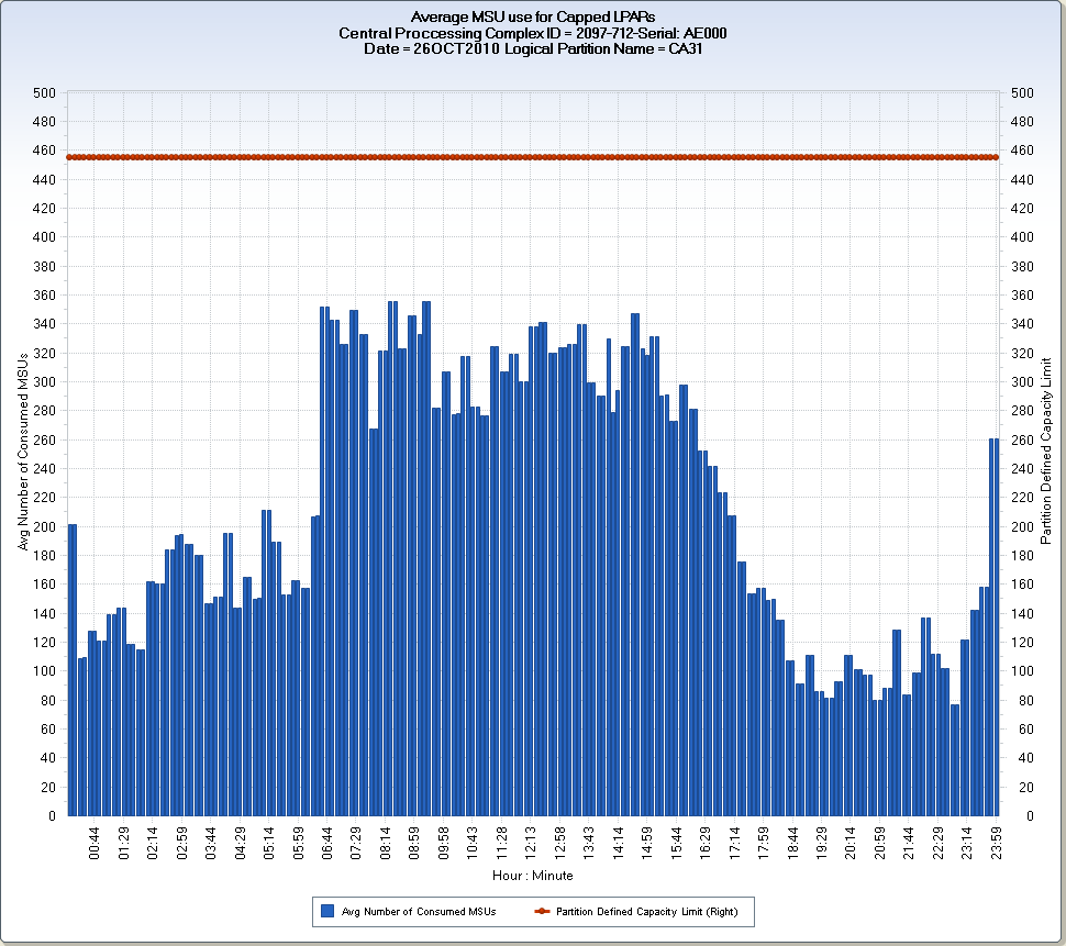 CA MICS Hardware and SCP Analyzer (RMF) Queries › Mainframe MSU Utilization and LPAR Capping › RMFMCL – Daily LPAR MSU Use and Capacity Limits