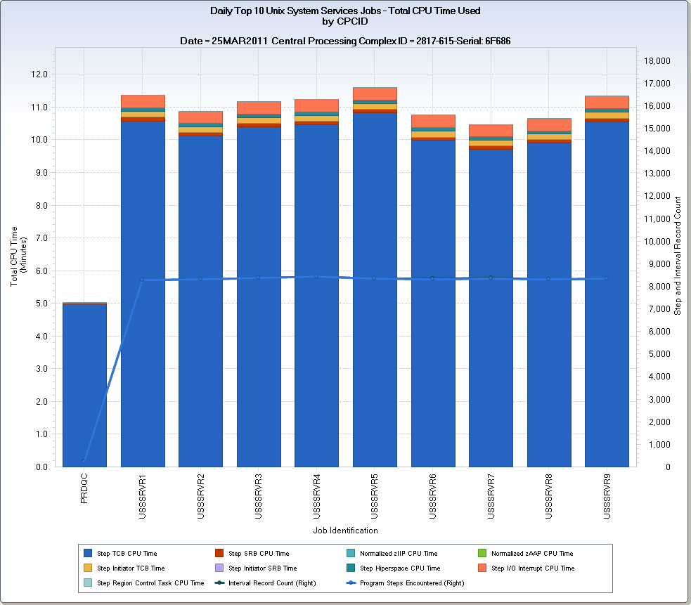 CA MICS Batch and Operations Analyzer (SMF) Queries › Top 10 Resource Users › SMFUJT – SMF Daily Top 10 Unix SysSrv Jobs