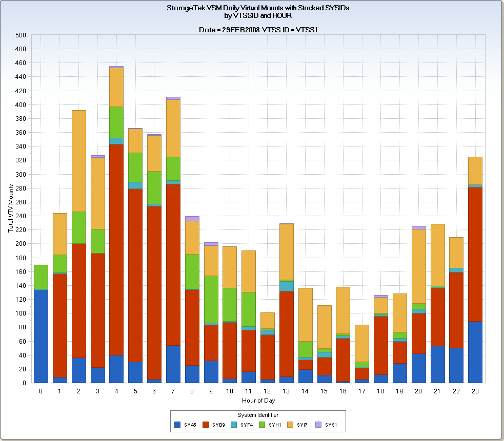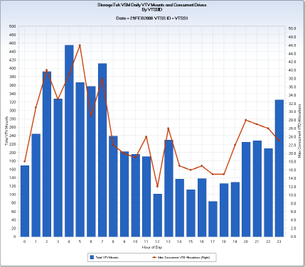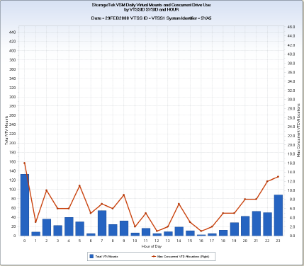 CA MICS Tape Analyzer Option (TAP) Queries › StorageTek VSM Queries › STKCDA – STK VSM Daily VTV Mounts and Concurrent Drive Use