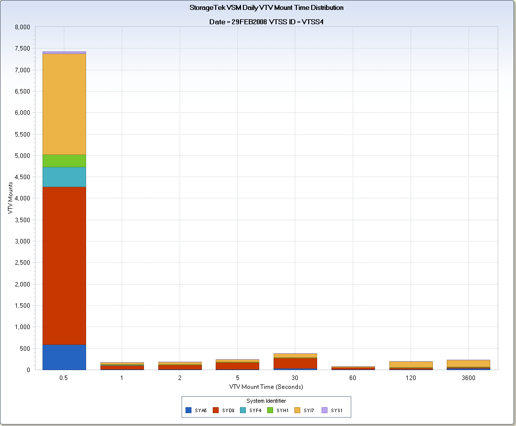 CA MICS Tape Analyzer Option (TAP) Queries › StorageTek VSM Queries › STKVMD – STK VSM Daily VTV Mount Time Distribution