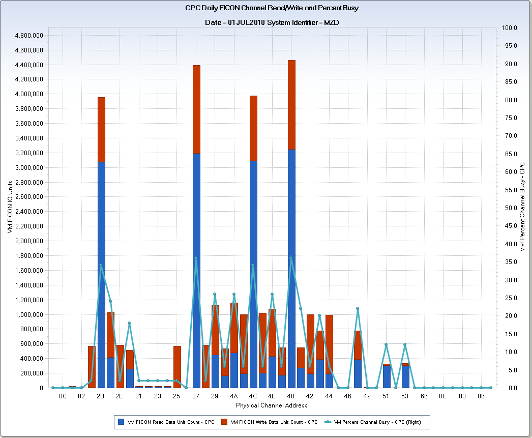 CPC Overall Channel Load Analysis 18:28 Tuesday, February 22, 2011 DATE RANGE 30JUN10:23:53:11.44 TO 01JUL10:11:59:11.44 ---------------------------------------------------- System Identifier=MZD ---------------------------------------------------- Avg Physical VM Channel Percent Channel Measurement Channel 0 / 10 11 / 20 21 / 30 31 / 40 41 / 50 41 / 50 61 / 70 71 / 80 81 / 90 91 / 100 Address Group Busy Percent Percent Percent Percent Percent Percent Percent Percent Percent Percent 27 FICON 28 0 16 40 36 6 6 0 0 0 0 40 FICON 28 0 18 40 36 6 6 0 0 0 0 2B FICON 28 0 18 42 36 4 4 0 0 0 0 4C FICON 28 0 20 42 36 4 4 0 0 0 0 29 FICON 26 0 10 72 16 4 4 0 0 0 0 4A FICON 26 0 10 70 16 4 4 0 0 0 0 4E FICON 26 0 12 70 14 2 2 0 0 0 0 2D FICON 26 0 12 70 14 2 2 0 0 0 0 41 FICON 22 0 24 74 2 0 0 0 0 0 0 48 FICON 18 6 66 28 0 0 0 0 0 0 0 43 FICON 16 10 80 10 0 0 0 0 0 0 0 20 FICON 20 0 46 52 0 0 0 0 0 0 0 51 FICON 6 90 10 0 0 0 0 0 0 0 0 53 FICON 6 90 10 0 0 0 0 0 0 0 0 31 FICON 4 90 10 0 0 0 0 0 0 0 0 4B FICON 2 100 0 0 0 0 0 0 0 0 0 4D FICON 2 100 0 0 0 0 0 0 0 0 0 4F FICON 4 90 10 0 0 0 0 0 0 0 0 42 FICON 2 100 0 0 0 0 0 0 0 0 0 44 FICON 2 100 0 0 0 0 0 0 0 0 0 2A FICON 2 100 0 0 0 0 0 0 0 0 0 2E FICON 2 100 0 0 0 0 0 0 0 0 0 21 FICON 4 88 12 0 0 0 0 0 0 0 0 22 FICON 4 88 12 0 0 0 0 0 0 0 0 23 FICON 4 88 12 0 0 0 0 0 0 0 0 24 FICON 4 88 12 0 0 0 0 0 0 0 0 49 FICON 0 100 0 0 0 0 0 0 0 0 0 50 FICON 0 100 0 0 0 0 0 0 0 0 0 52 FICON 0 100 0 0 0 0 0 0 0 0 0 60 ESCON 0 100 0 0 0 0 0 0 0 0 0 66 ESCON 0 100 0 0 0 0 0 0 0 0 0 8B ESCON 0 100 0 0 0 0 0 0 0 0 0